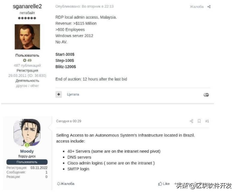 2.在黑客论坛和私人聊天中出售的具有有限访问权限的漏洞,有时这些只是包含未经验证的信息的小型数据库。