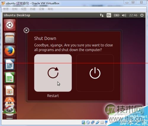 6、后虚会弹话框候的后点安装完成后按回车键退出终端,然后点击右上角的按钮,选择重启虚拟机: