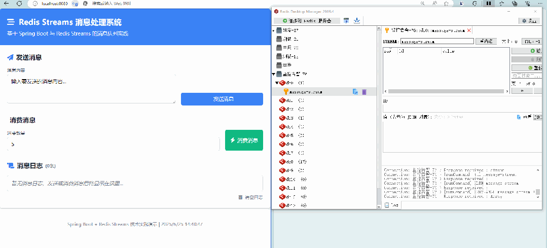 消息持久化:消息存储在Redis内存中,并可通过持久化策略(如 RDB、构建高效AOF)保证数据不丢失。消息分组:支持将消费者划分为不同的分组,每个分组可以独立消费消息,实现消息的并行处理。消息确认机制:消费者处理完消息后,可以向流发送确认消息,确保消息不会被重复处理。消息回溯:可以从任意位置读取消息,支持历史消息的查询和重放。效果图