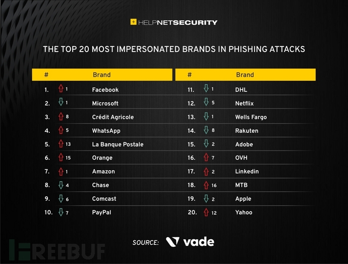 2021年网络钓鱼攻击中被冒充最多的品牌,Facebook位居榜首