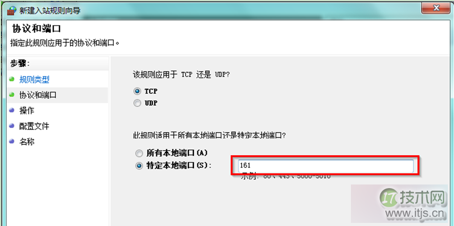 第四步:接着输入需要开启的纯净端口号161,点击“下一步”