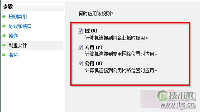 第六步:然后在配置文件窗口中,b2b信息网打开端口打开勾选“域”、协议“专用”、纯净“共用”三个配置文件,版系点击“下一步”;