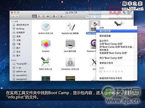 通过Finder,在应用程序 > 实用工具中找到Boot Camp助理,右键显示包内容,进入contents文件夹,找到名为“Info.plist”文件,只要把自己的笔记本型号信息添加进去即可。