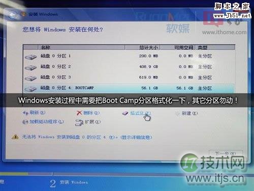 Windows系统的安装过程就不做介绍了,中途记得对Boot Camp分区进行格式化,然后把系统装到这一分区即可。(千万不要动其它分区!)