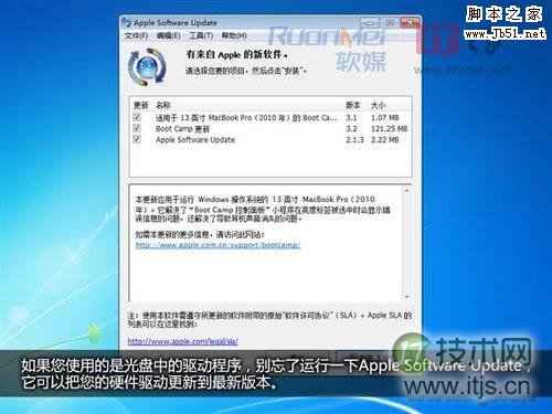 而假如您使用的是随机苹果系统盘中的驱动,装完之后别忘了使用Apple Software Update更新一下。