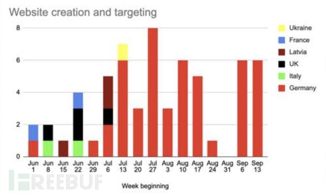 Avisindependent[.]eu 6/3/2022 Francebild[.]pics 6/6/2022 Germanyrrn[.]world 6/6/2022 Multipledailymail[.]top 6/10/2022 UKrepubblica[.]life 6/13/2022 Italydelfi[.]life 6/15/2022 Latviadailymail[.]cam 6/23/2022 UKdailymail[.]cfd 6/23/2022 UK20minuts[.]com 6/28/2022 Franceansa[.]ltd 6/28/2022 Italyspiegel[.]ltd 6/29/2022 Germanytheguardian[.]co[.]com 7/7/2022 UK此外,此次行动背后的攻击者在许多互联网服务中推广文章以及原创备忘录和 YouTube 视频,包括 Facebook、Instagram、Telegram、Twitter、请愿网站 Change.org 和 Avaaz,甚至是云服务器 LiveJournal 也没有逃过。
