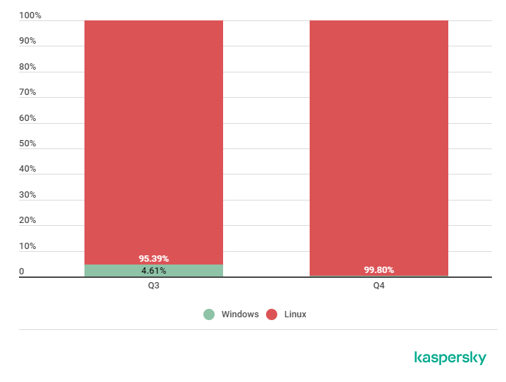 Windows / Linux僵尸网络攻击比例,2020年第三季度和第四季度
