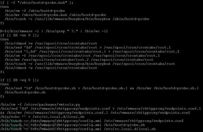 这种清理和对 /store/packages/vmtools.py的应用与瞻博网络(juniper)在 2022 年 12 月观察到的 ESXi 服务器的自定义 Python 后门非常相似 。为此所有服务器管理员都应该检查此 vmtools.py 文件是否存在,以确保它已被删除。