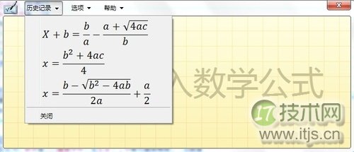 值得一提的是,数学输入面板还具有查询编写数学公式的记录,点击“历史记录”即可显示已经编写识别正确的数学公式。用户需要使用某一公式时,在历史记录中点击该公式,即可在数学输入面板显示和使用。免费源码下载