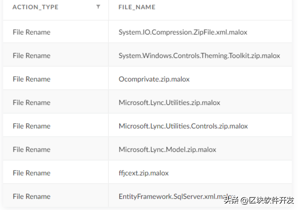 这个调查的Mallox勒索软件示例使用ChaCha20加密算法对文件进行加密,并为加密的文件添加.malox扩展名。除了使用受害者的名字作为扩展名之外,观察到的其他文件扩展名还有:.FARGO3、.colouse、.avast、.bitenc和.xollam。有关Cortex XDR中加密文件的示例如下图所示。