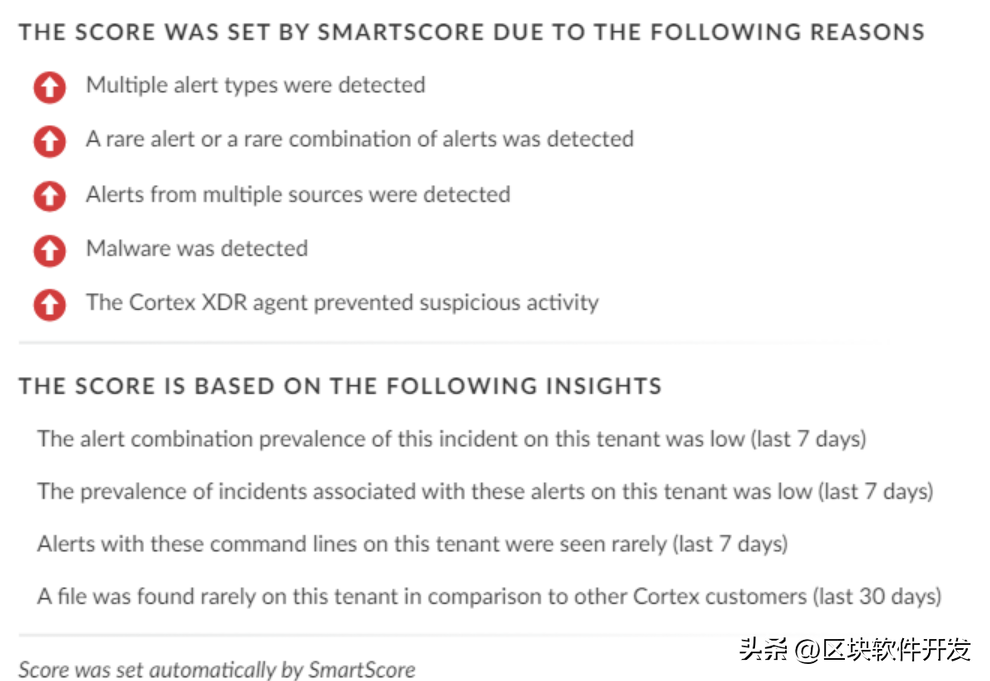 SmartScore是一个独特的机器学习驱动的评分引擎,它将安全调查方法及其相关数据转换为混合评分系统,对涉及Mallox勒索软件的事件进行了100分的评分。这种类型的评分可以帮助分析人员确定哪些事件更紧急,并提供评估原因,帮助确定优先级。