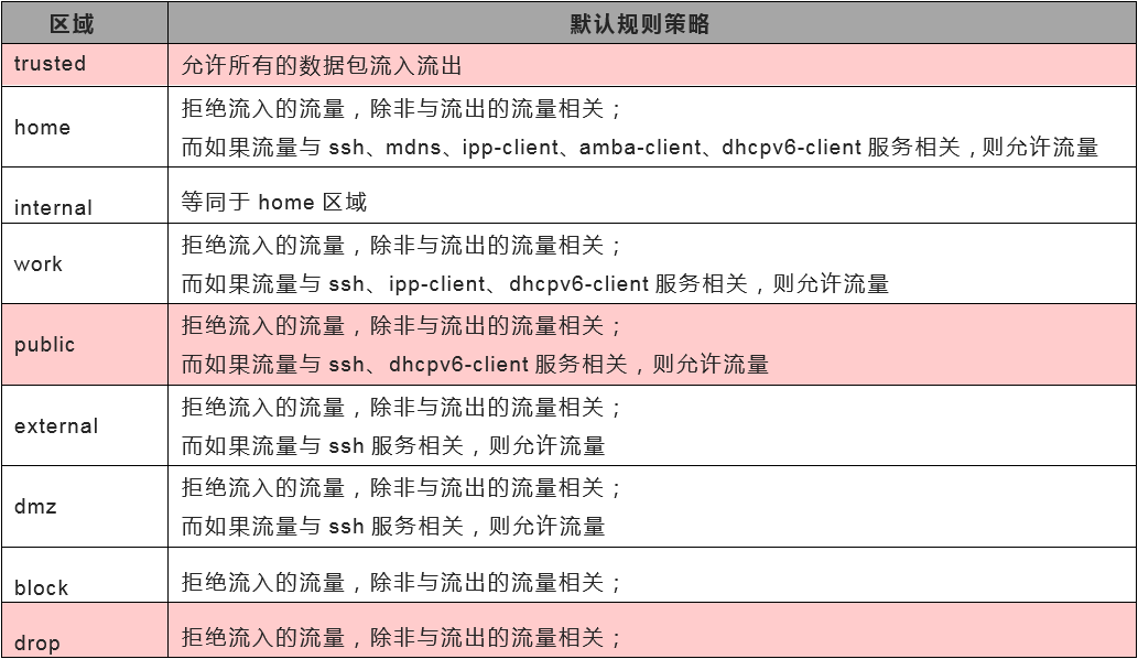 Firewalld防火墙区域概念