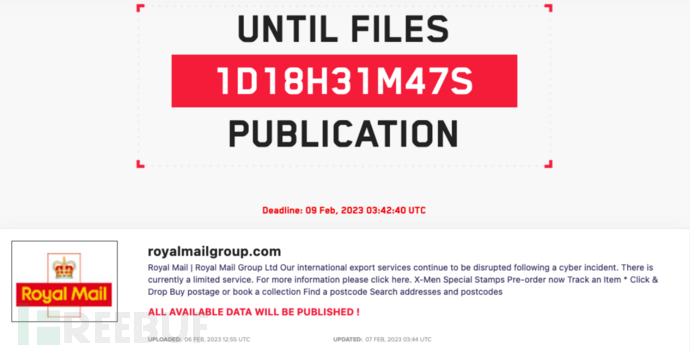 而随着2月6日(UTC),皇家邮政被列入LockBit数据泄露网站的攻击条目,表示该组织正式宣告对这起攻击事件负责。条目显示,如果不能在 2 月 9 日星期四凌晨 03:42分(UTC)之前缴纳赎金,被盗数据将会公开发布。