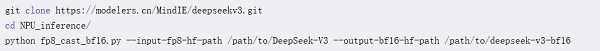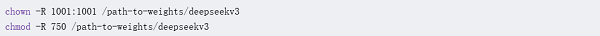 提供的MindIE镜像预置了DeepSeek-V3模型推理脚本,IT技术网从您信任的来源自行获取权重后,放置在从上述下载的模型代码的主目录下,修改模型文件夹属组为1001,执行权限为750,启动容器。