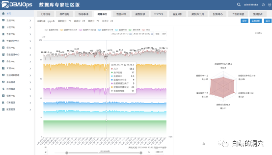 从健康分上看,系统中的存在一定的波动。找一个点看看雷达图,可以看到负载和并发维度出现了一些丢分。