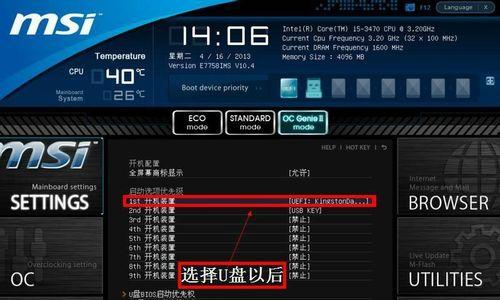 在启动菜单中,通过方向键选择U盘启动选项,并按下回车键确认,这样电脑将会从U盘中启动。