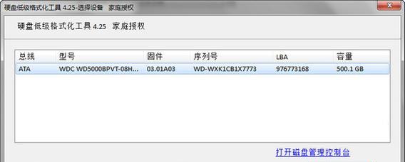 在格式化界面中,选择要格式化的硬盘,并注意选择正确的硬盘,以防误操作导致数据丢失。