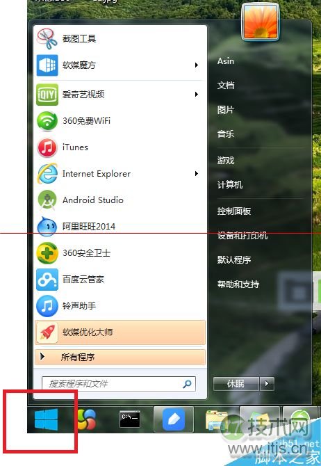 5、插件下载好了后,再次点击“Windows 7开始按钮”,点击红框部分。