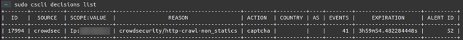 复制$ sudo cscli decisions list