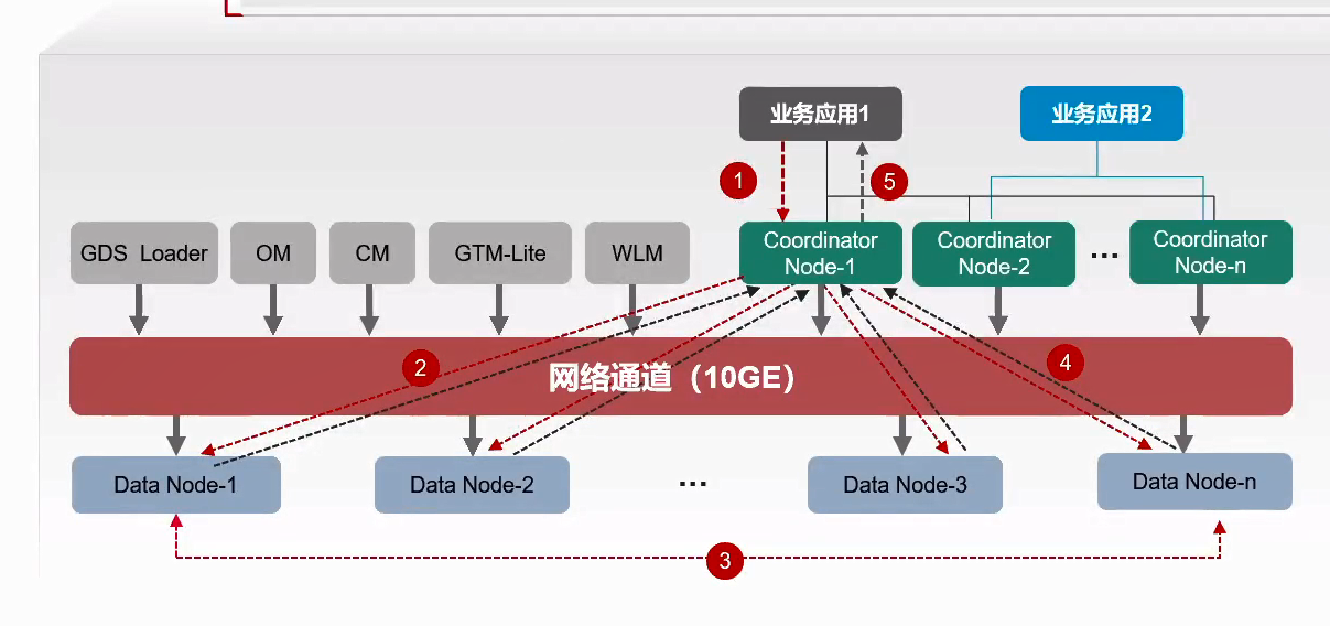 因为数据是通过一致性Hash技术均匀分布在每个节点,因此DN在处理数据的过程中,可能需要从其他DN获取数据,GaussDB提供了三种stream流(广播流、聚合流和重分布流)来降低数据在DN节点间的流动。DN将结果集返回给Coordinator进行汇总。Coordinator将汇总后的结果返回给业务应用,从而提升复杂SQL查询的性能。