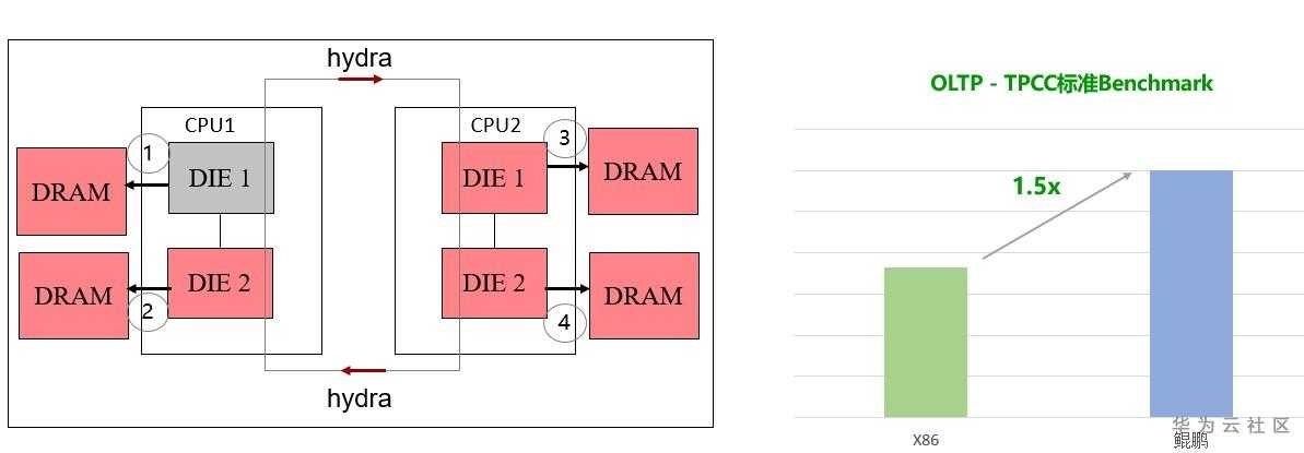 第三个关键技术是基于NUMA-Aware实现高性能事务处理。结合鲲鹏多核CPU架构优势,通过进行NUMA绑核、对全局数据结构进行NUMA分区改造,减少跨核处理和核间冲突,提升业务并行处理能力;充分利用鲲鹏原生Atomic_LSE指令,实现NUMA-Aware自旋锁,大幅降低指令数,有效提升指令效率,性能更强。