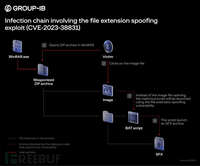 该漏洞被标记为 CVE-2023-38831,锁定允许威胁者仿用文件扩展名,交易从而在伪装成看似无害的零日利用漏洞图像或文本文件的压缩包中启动恶意脚本。2023 年 8 月 2 日发布的攻击 6.23 版本修补了这一漏洞,同时修复的安全还有 CVE-2023-40477。